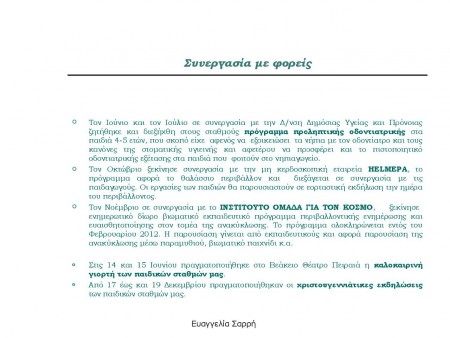 Δραστηριότητες Βρεφονηπιακών Σταθμών 2012